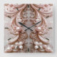 Horloge Carrée Pink Ornate Pearl and Floral Wall Clock