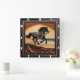 Découvrez l'excitation de la plage ouverte avec notre magnifique horloge murale, avec un majestueux cheval Morgan course le long d'un rivage doré au coucher du soleil. Ce magnifique garde-temps est encadré par une bordure en bois noir plat de ½ pouce, qui contraste magnifiquement avec la conception complexe en bois charné qui présente des sculptures profondes et des marques de brûlures robustes dans les tons rouge, gris et noir. Le grain texturé ajoute une touche d'élégance rustique, ce qui en fait un complément parfait à toute décoration sur le thème de la côte ou de l'équitation. Ce qui distingue cette horloge est l'opportunité de personnalisation à travers l'outil de design, vous permettant de customiser la couleur des nombres et de choisir parmi différents styles de police pour correspondre à votre esthétique unique. Que vous préfériez une teinte vibrante ou subtile, les numéros de couleurs blanches peuvent être transformés selon vos goûts, en vous assurant que cette création unique en son genre non seulement donne du temps mais reflète aussi votre style individuel. Avec son design méticuleusement travaillé qui simule l'aspect du bois sculpté, cette horloge offre un charme rustique sans compromettre la qualité ou l'authenticité.