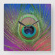 Horloge Carrée Plume de la queue d'un paon