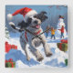 Un Griffon de pointe À poils durs plein d'entrain parcourt joyeusement la scène hivernale enneigée, portant un casquette de Noël rouge festif. Ce design animé met en valeur le manteau brun de la race, le patrimoine de chasse et la personnalité affectueuse tout en capturant la chaleur et la joie de la saison des fêtes. Un moment d'hiver plein de charme festif et chaleureux.