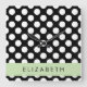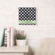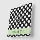 Horloge Carrée Pois noirs et blancs, pointillés, Votre nom
