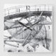 Dessin au crayon.Artiste de Zolotareva. Motif moderne et moderne noir blanc. Il y a un beau pont sur l'étang.