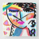 Horloge Carrée Portrait Abstrait funky d'une femme