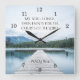 Citation inspirante Écriture murale horloge dépeint une belle scène d'une jetée sur l'eau avec des arbres et des montagnes, et comprend verset de la Bible Psaume 84:2; Mon âme aspire, même des peintures pour les tribunaux du Seigneur._