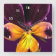 Horloge Carrée Purple Yellow Flower Abstract Clock