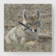 Coyote Pose Une Horloge "numérotée" . Un jeune coyote se détend après une matinée à la poursuite de souris dans les prairies à herbes courtes du sud de l'Alberta.