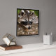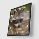 Une horloge avec la photo d'un joli et curieux raton laveur reposant son visage sur un rondelle en bois. Adorable.