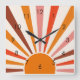 Horloge Carrée Rayons Soleil Rétro Coucher Soleil Orange Jaune Ro