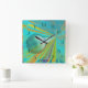 Horloge Carrée Rays on Planet Abstract Design in Turquoise