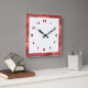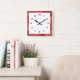 Grande horloge acrylique carré avec un cadre rouge brillant et un arrière - plan blanc. La numérotation traditionnelle rouge complète le look. Cliquez sur le bouton "Customiser!" pour modifier la couleur de l'arrière - plan, ajouter la police, la taille et la position au besoin. Oeuvre et design de Karlajkitty