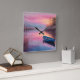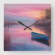 Horloge Carrée Réflexion du ciel rose de bateau bleu rustique