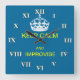 "Gardez le calme et l'improvisation" - c'est une manoeuvre classique d'organiste ou de réalisateur de choeur - quelque chose ne va pas pendant un hymne ou un hymne alors commencez à improviser et espérons que personne ne le remarquera. Le design a un arrière - plan bleu et la célèbre couronne avec les mots comme dans l'affiche 2ÈME GUERRE MONDIALE du "Keep Calm and Carry on"... series. Un design amusant sur une horloge que tout musicien apprécierait. Le cadran comporte des chiffres romains de classe.