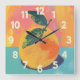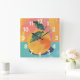 Cette image vibrante présente une orange colorée et stylisée avec des feuilles verts, sertie contre un arrière - plan rose et orange vivant. Les oeuvres d'art ont une ambiance pop art moderne et ludique.