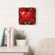 Horloge Carrée Romantic Red Heart Framed by Roses and Butterflies