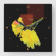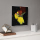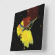 Des fleurs jaunes sur un arrière - plan noir avec des cubes rouges défraîchis qui s'arrachent au loin