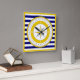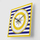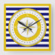 Horloge Carrée Rose de boussole jaune Bleu et blanc