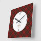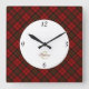 Horloge Carrée Rouge tartan Noël plaid hiver motif Monogramme
