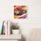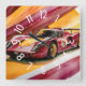 Horloge Carrée Rouge Voiture Race Aquarelle Jaune