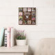 Horloge Carrée Rustic Brown Wood 12 Photo Collage Family Quote