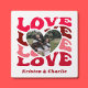 Décor maison pour la Saint Valentin. Célébrez l'amour avec cette horloge murale carré, personnalisée avec vos noms ou initiales et votre photo de couple préférée sur un design de coeur avec texte rouge.