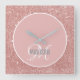 Horloge Carrée Script de parties scintillant rose vif moderne mon