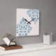 Horloge Carrée Scroll Damask Art I Blue on Cream