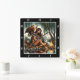 Horloge Carrée Secrets autochtones : Le regard de l'aigle Lune