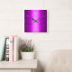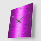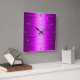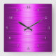 This shiny square clock in shades of Red Raspberry and Améthyst veut brighten the wall of any room it is displayed in.