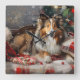 Horloge Carrée Shetland Sheepdog Festif de Noël