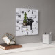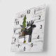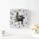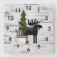 Horloge Carrée Silhouette rustique orignal et arbres sur bouleau