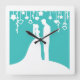 Horloge Carrée Silhouettes Aqua & White Bride et Mariage de chamb