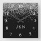 Horloge Carrée Silver Black Glitter Monogram Girly Name Initials