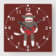 Horloge Carrée Singe à soie mignonne avec Casquette tenant coeur