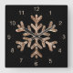 Horloge Carrée Snowflake Élégant Noir et Or Noël