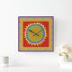Southwest del sol wall clock. Sunshine wall clock. Acrylic square wall clock orange red yellow Virginia Vivier, Vagabond Folk art.