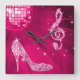 Horloge Carrée Sparkly Hot Pink Music Note & Stiletto Heel