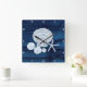 Horloge Carrée Starfish Sea Shells Beach Sand Dollar bleu n blanc