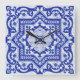 Horloge Carrée Style azulejo en céramique craquée bleue Azulejo V