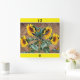 Horloge Carrée Sunflowers Papillons Rustic Barque Carré Wa