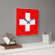 Simple red and white design with the Swiss flag - a white cross against a red field.