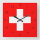 Simple red and white design with the Swiss flag - a white cross against a red field.