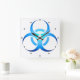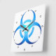 Horloge Carrée Symbole Bio-Risque Bleu avec points