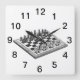 Horloge Carrée Tableau d'échecs et pièces d'échecs Art Vintage