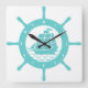 Teal green nautical boat wheel with white numbers and custom white background you can change.
