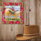 Horloge Carrée Thème western sauvage art de rodéo cowboy western