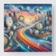 Embark on a psychedelic journey through time and space with this mesmerizing artwork! This vibrant piece features a winding road, adorned with clocks, planets, and futuristic cityscapes, all swirling and merging in a kaleidoscopic display.