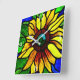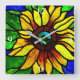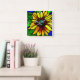 Horloge Carrée Tournesol de pays en verre teint rustique