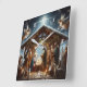This beautiful and festive Nativity scene is a perfect addition to your Christmas decor. The artwork features the Holy Family, Mary, Joseph, and baby Jesus, surrounded by adoring angels and shepherds. The scene is set against a backdrop of twinkling stars and a shining star, symbolizing the birth of Christ. This timeless image is a reminder of the true meaning of Christmas.