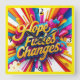 Un design dynamique où le texte multicolore "Hope Fuels Changes." rayonne d’énergie, chaque lettre brille d’or symbolisant la puissance de l’espoir à se transformer. Les tons vifs se fondent dans l'harmonie, évoquant un sentiment d'optimisme et de renouveau, tandis que les tons dorés apportent une touche de chaleur et de promesses inspirantes. "Image originale générée par Meta AI. L'IA a généré des oeuvres d'art. Licence CC BY-SA 4.0.