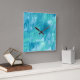 Horloge Carrée Turquoise Abstrait